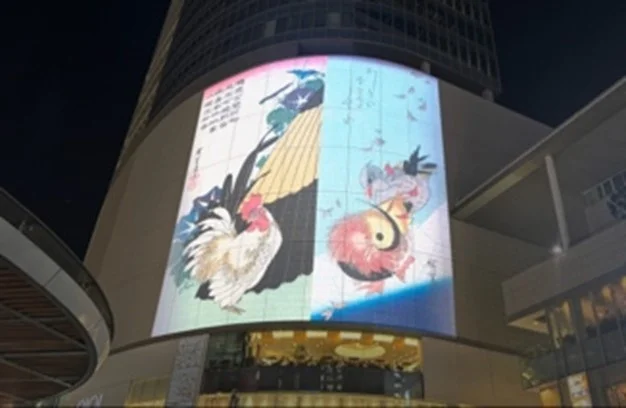 ・巨大な壁面をキャンバスとして活用し、浮世絵の鮮やかな色彩と美しい構図が映像で蘇ります。その光景は、まるで「屋外の巨大ギャラリー」。迫力ある映像表現が見る人を圧倒します。
