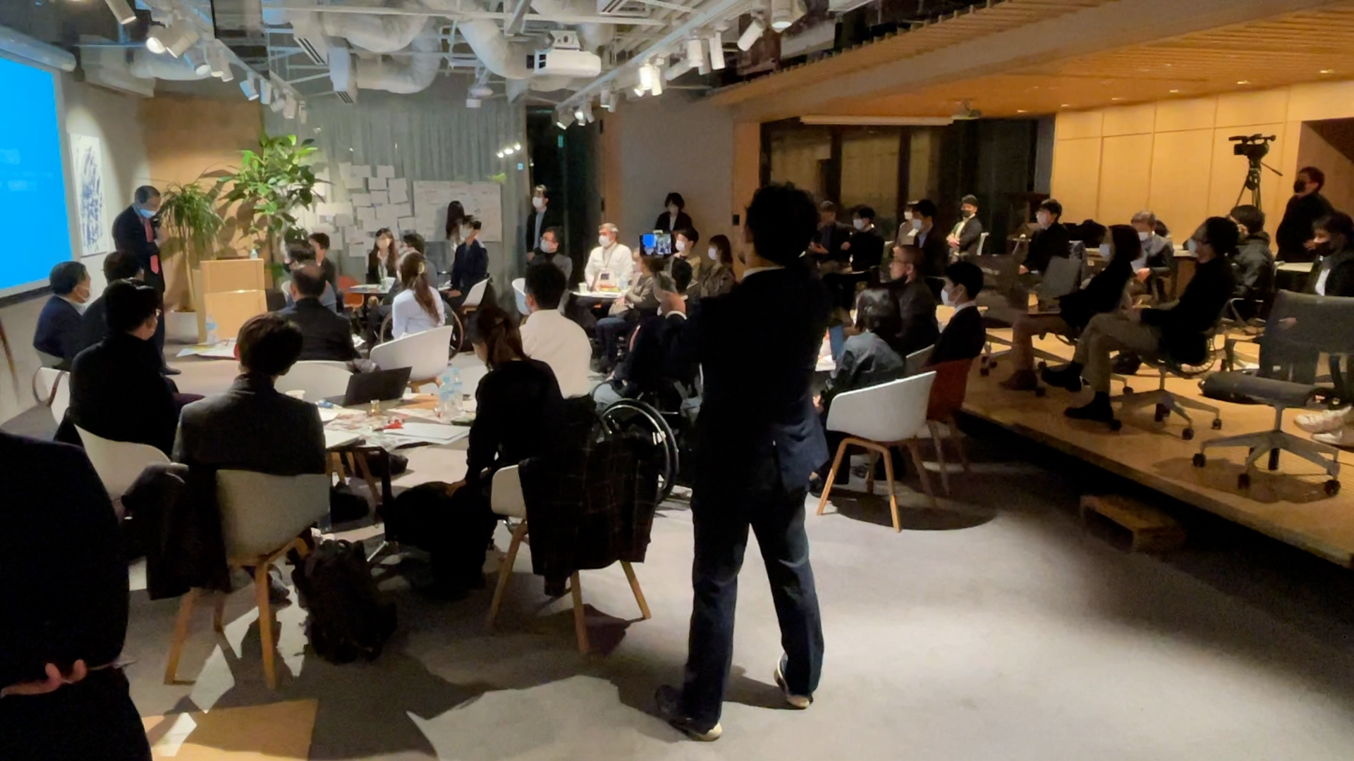 第2部のワークショップでは、フィールドワークに参加した5チームそれぞれが、ルート走行を経て気づいたこと、感想、提案などを発表し、大丸有エリアのバリアフリー化やスマートシティ化に向けて必要なツール、取り組みなどについてディスカッションを行いました。